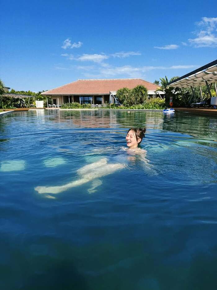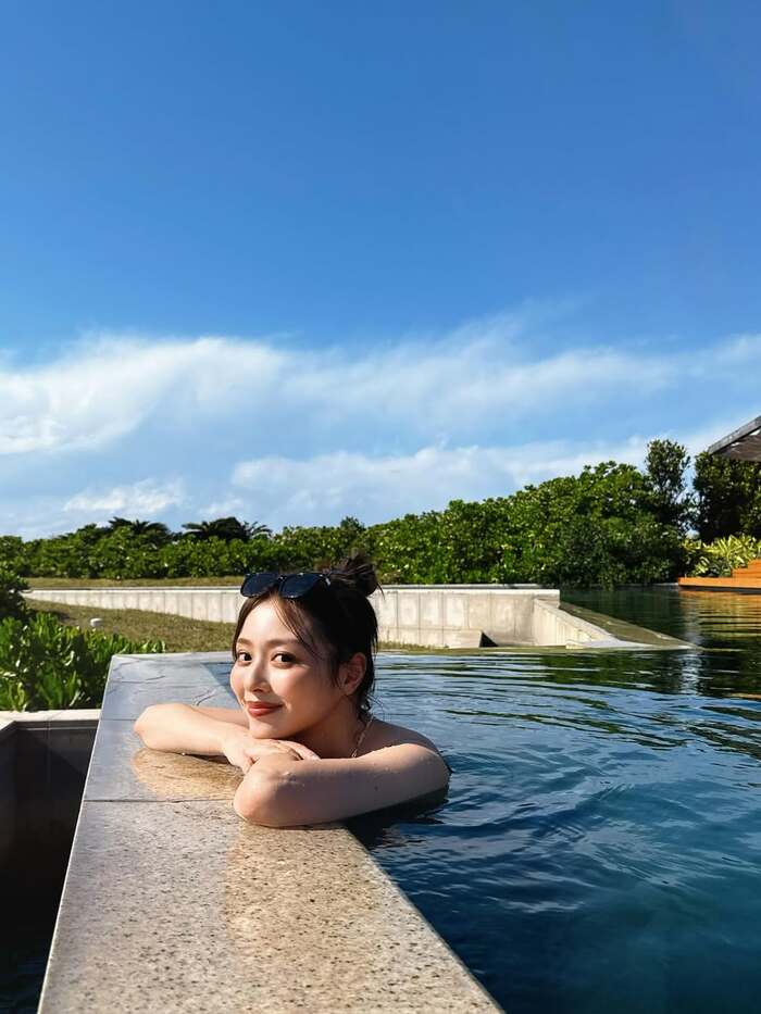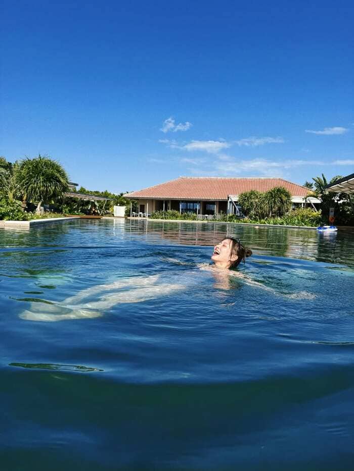 さらに、青の水着姿でプールにぷかぷかと浮かぶショットは、なんとも気持ちがよさそう!