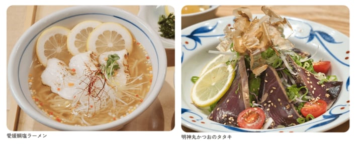 レストランをフードコート化すると共に、店内内装や照明を一新し、明るく心地よい空間に生まれ変わります。リニューアル後のフードコートでは、遠くに瀬戸内海の燧灘ひうちなだが広がる眺望を眺めながらお食事が楽しめると共に、海側のカウンター席にはPC等が充電可能なコンセントが設置され、ビジネスシーンでも快適にご利用いただけます。また、自然豊かな瀬戸内や四国をご満喫いただけるよう、地元食材を使用したご当地メニューを多数取り揃えます。ショッピングコーナーは、面積を約2倍に拡大し、瀬戸内や四国各県の主要なお土産はもちろんのこと、愛媛ならではの柑橘類商品や今治タオル、瀬戸内海の海産物等の魅力的なご当地商品も多数取り揃えます。