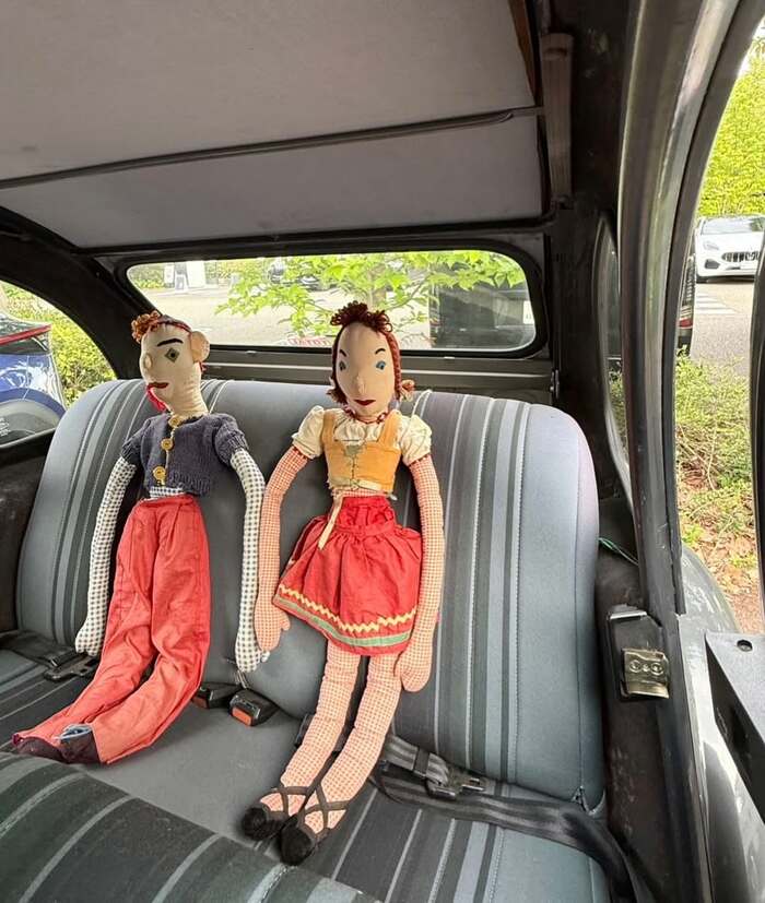 また「後部座席にはアンティーク人形が同乗!ボンジュール」と、ユニークな同乗者も紹介。