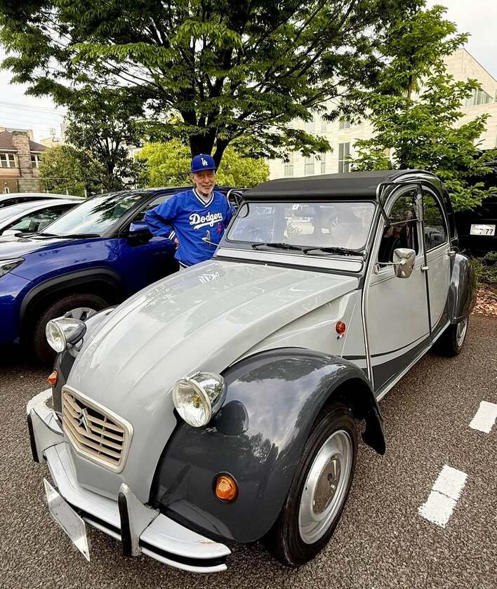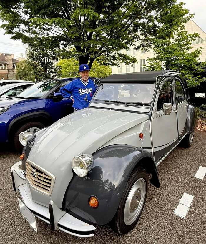 公開された写真には、ライトグレーとダークグレーのツートンカラーが目を引く、丸みを帯びたフォルムのクラシックカーと、それに寄り添うテリー伊藤さんの姿が収められています。青いドジャースコーデで片手を腰に当て、カメラに視線を向けるテリーさん。口元に浮かぶ嬉しそうな表情からは、念願の愛車を手にした喜びがひしひしと伝わってきて、見ているこちらも思わず心が弾みます。