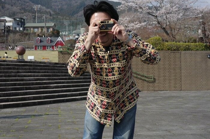 撮影者はレトロなフィルムカメラを構え、白い歯がのぞくほどキラキラの笑みを浮かべていますが、その正体は…