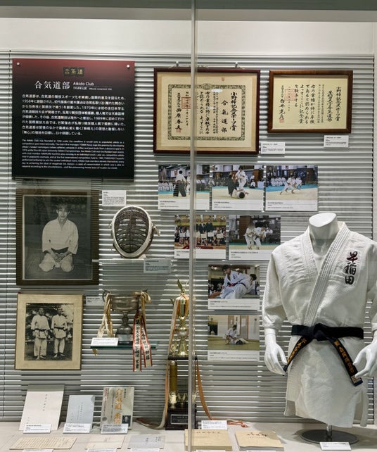 体育各部44部と附属系属校を定期的に入れ替えながら、その活躍を紹介しています。今期は、「剣道部」「卓球部」「ヨット部」「準硬式野球部」「ワンダーフォーゲル部」「合気道部」の6部を取り上げ、それぞれの競技用具やユニフォームのほか、国内外の大会で獲得したメダル、トロフィーなどを展示します。