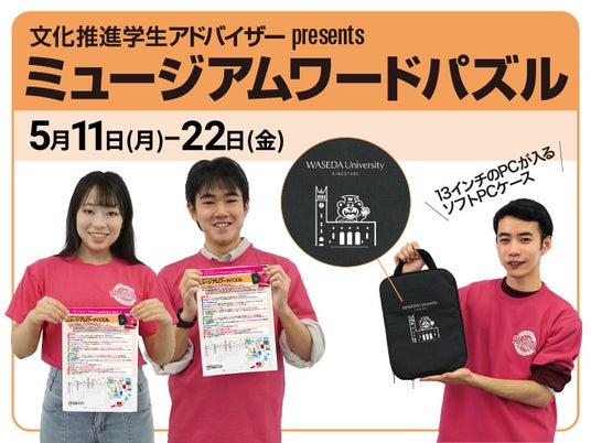 早稲田文化を推進する学生ボランティア「文化推進学生アドバイザー」や早稲田大学漫画研究会が、皆さんにミュージアムを楽しんで巡っていただくために様々なプレゼント企画を用意しました。