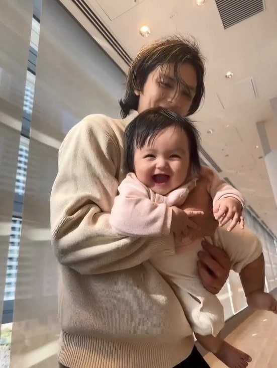 最近の投稿では「良く笑う子 この笑顔にみんなやられる」とつづり、ググガガちゃんを抱っこした親子ショットを公開。