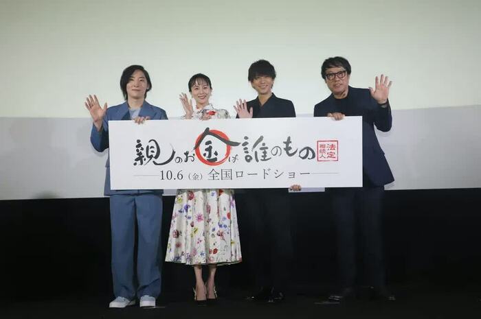 比嘉愛未さんと三浦翔平さんがW主演を務める、映画「親のお金は誰のもの 法定相続人」の完成披露舞台挨拶が9月7日に行われ、比嘉さん、三浦さん、主題歌を担当したビッケブランカさん、田中光敏監督が登壇しました。