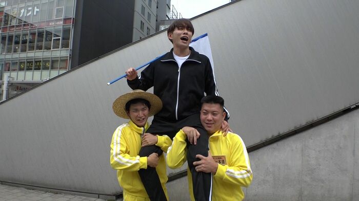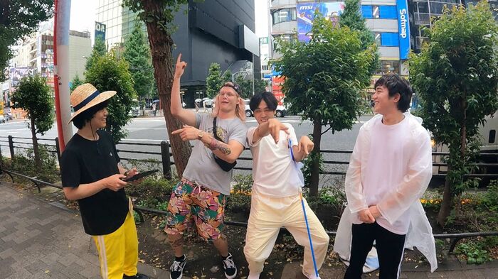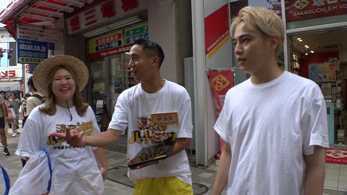 IMP.の4人は、全員が20代ということもあり、ハチミツ芸人たちと同世代。なかには、街ロケが初めてというメンバーもいて、街行く人にいきなり声をかけるという難易度の高い企画に、最初は緊張気味。