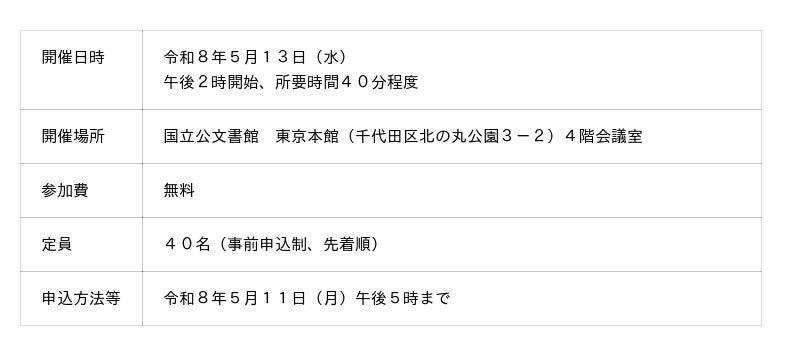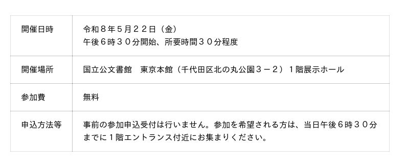 開催地 :国立公文書館 東京本館1階展示ホール