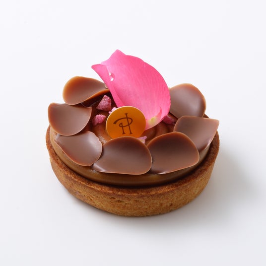 高島屋のシンボルフラワーであり、ピエール・エルメ・パリのクリエーションを象徴する”バラ”の上品な香りと、ローストしたアーモンドの風味をまとったチョコレート、 香ばしいアーモンドプラリネが融合した華やかなパティスリー(生ケーキ)です。