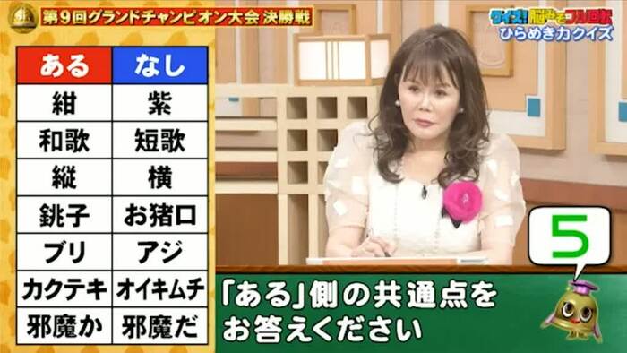 次は、あるなしクイズ。次の単語の「ある」側の共通点を答えてください。
