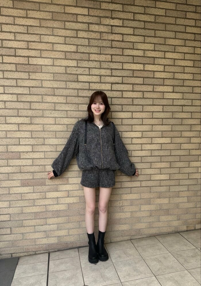公開された写真には、レンガ調の壁を背に立つ紗来さんの姿が収められています。ダークグレーのパーカーに同系色のショートパンツを合わせたワントーンコーデに、足元は黒のブーツをプラス。ミニ丈のボトムスからはすらりとした脚がのぞき、シンプルながらも可愛らしさが際立つスタイリングです。