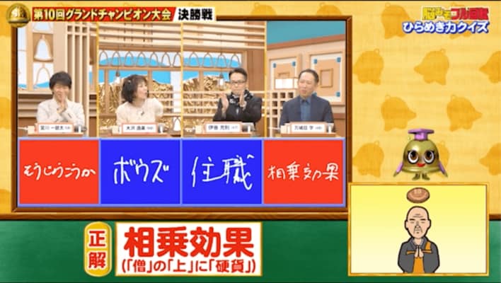 お坊さんの頭上に10円玉が。「お坊さん」でも「10円玉」でもなく、それぞれ別の言い方をすると…。