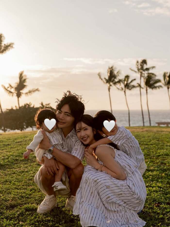そんな舟山さんは、南国の雰囲気漂うロケーションで、ストライプ柄のリンクコーデをした夫や子どもたちとにっこり笑顔を浮かべたショットを公開し、「私たち家族のもとに、新しい命がやってきてくれました」と、第3子妊娠を発表。