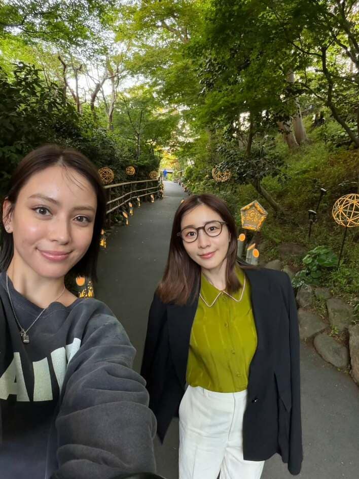 投稿では、椿山荘の庭園を滝沢さんと田中さんが散歩している様子を公開。