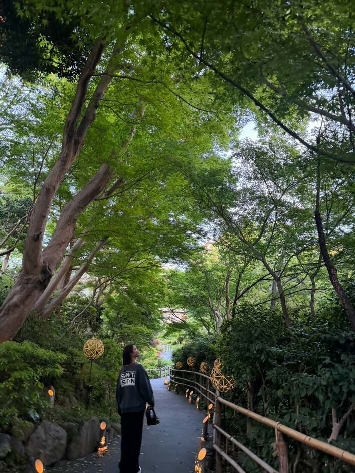 庭園を散策し「庭中また緑で、ずっと温泉地に来たようだねと話しました。」と、景色を楽しんだ様子の滝沢さん。