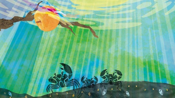 賢治が生前に発表した数少ない童話の一つで、蟹(かに)の兄弟の日常を豊かな表現力で描いた作品。「クラムボン」「イサド」といった不思議なことばも出てきます。