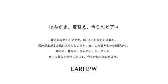 今回のリブランディングでは、イヤージュエリー<EARFLoW>をブランドの中心となるアイテムに据え、耳元から楽しむスタイリングを提案します。ピアス、イヤーカフ、イヤリングを自由に組み合わせ、その日の気分やシーンに合わせて“今日の耳元”を楽しむ。