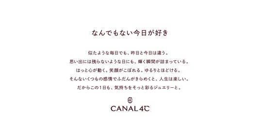 CANAL 4℃が掲げる新たなブランドメッセージは、「なんでもない今日が好き」。特別な日のためだけではなく、日常のワンアクションにそっと彩りを添えるジュエリーを通じて、毎日の中にある小さなきらめきや、自分らしく過ごす時間に寄り添うブランドへと進化します。