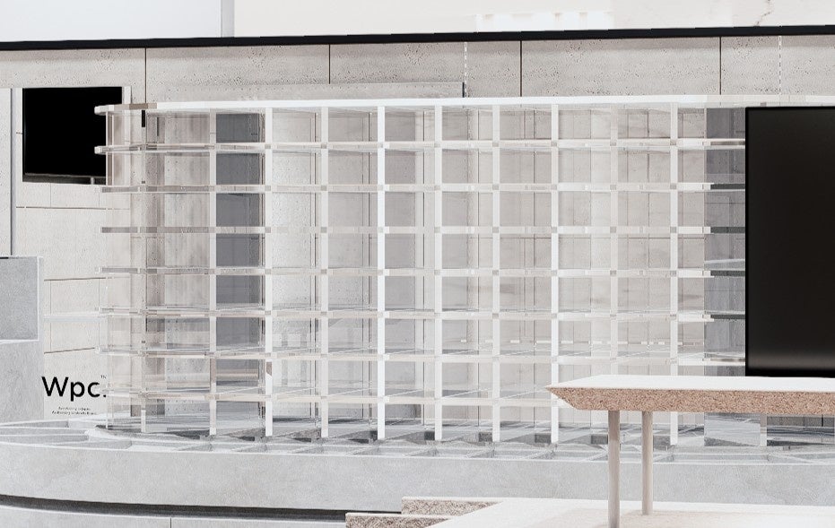 店内は、洗練された名古屋のイメージに調和するグレーを基調とした内装を採用。350種以上のアイテムを取り揃え、Wpc.の多彩なデザインやカラーが映える空間となっております。なかでも、店舗のアイコンとなる”アンブレラマンション”には、256本の折りたたみ傘をディスプレイ。「傘を選ぶ楽しさ」を感じていただきたいという想いを込めて設計したものです。