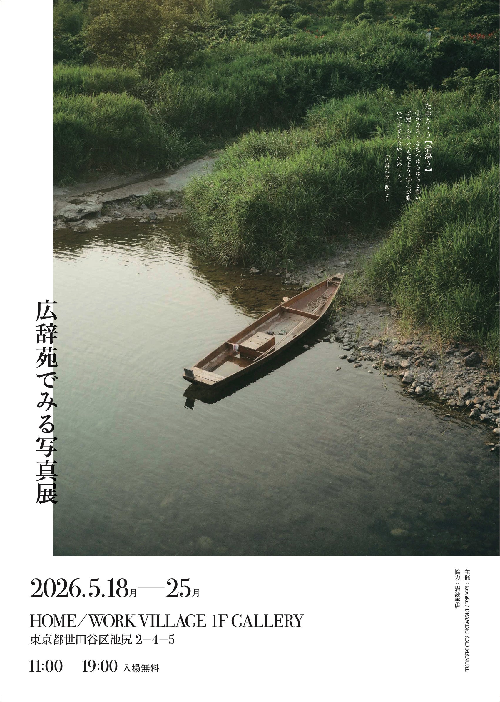 本写真展には『広辞苑』の出版元である岩波書店が全面協力。『広辞苑 第七版』に掲載されている様々な言葉や語釈を活かし、趣向を凝らした展示が展開されます。
