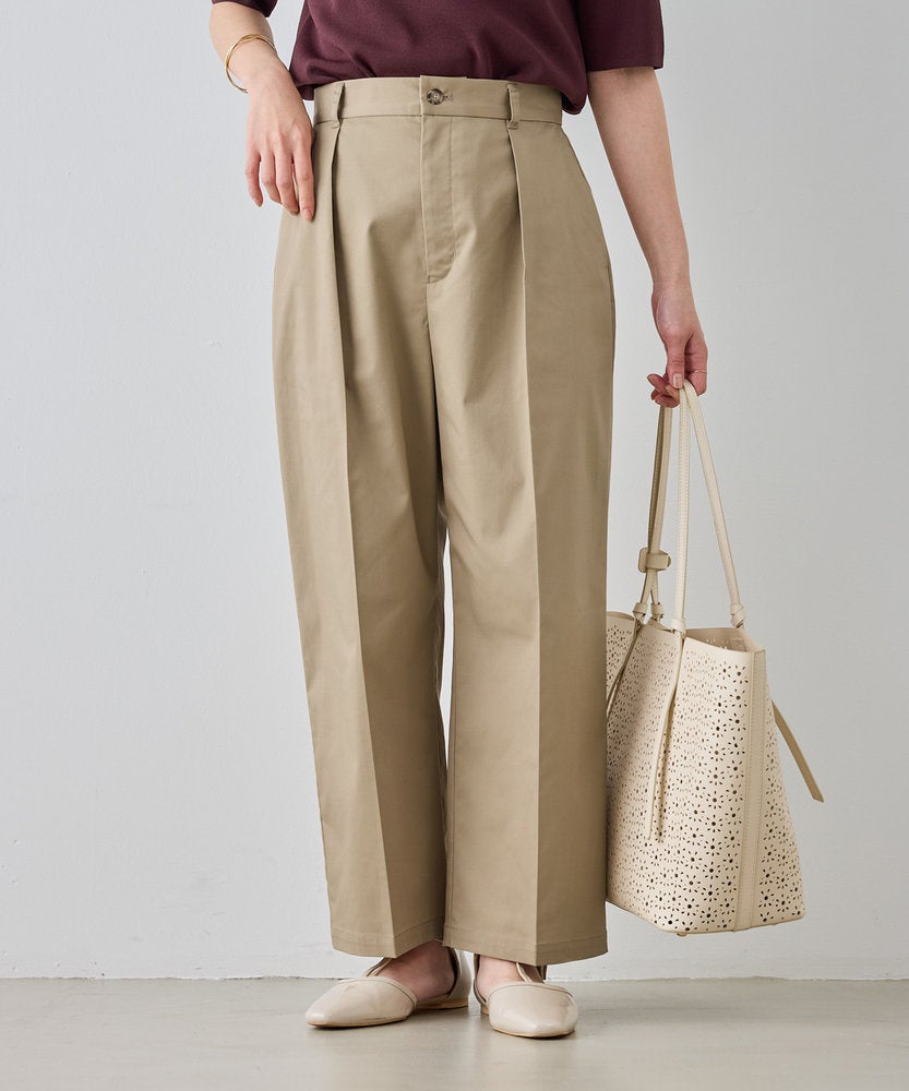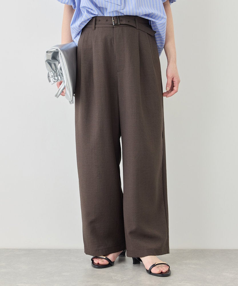 ウエストタックが美しいシルエットを叶えるワイドパンツ。太すぎない絶妙な裾幅で脚のラインを拾いにくくスタイルアップ効果も期待できます。ウエスト内側のサイドベルトにより、さらに自分好みのフィット感に調整可能です。