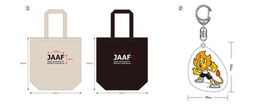 1.JAAFロゴ入りトートバッグ(白・黒) - 各1,500円(税込)2.アスリオンキーホルダー - 1,000円(税込)