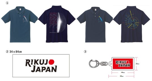 1.RIKUJO JAPANポロシャツ(記録柄・スパイラル柄) - 各3,500円(税込)2.RIKUJO JAPANタオル - 2,000円(税込)