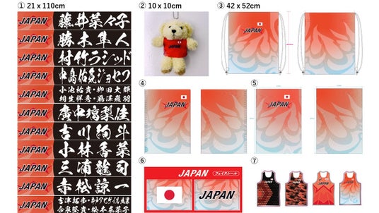 1.東京2025世界陸上日本代表 入賞選手名タオル - 各3,000円(税込)2.日本代表ユニフォーム着用ベアキーホルダー - 2,000円(税込)