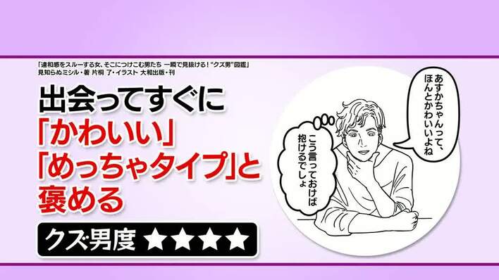 見知らぬミシルさんによると、気をつけなければいけないのは、出会ってすぐに「かわいい」などと褒めてくる男。そういう人は内心では、「こう言っておけば抱ける」と思っているといいます。