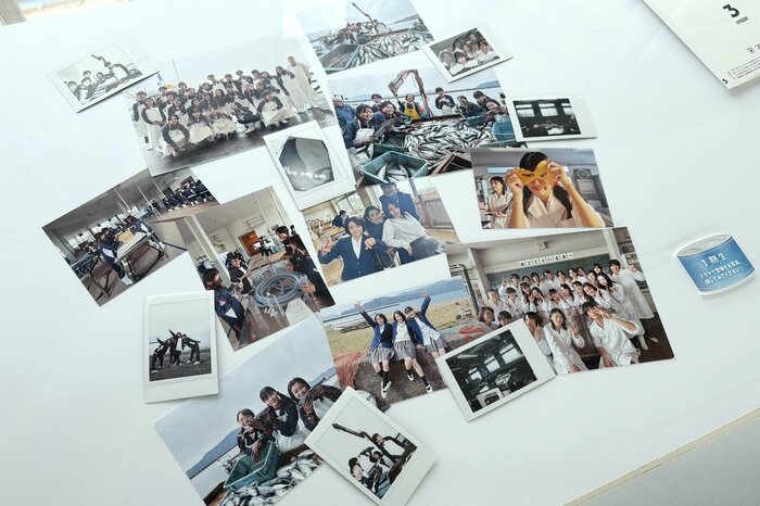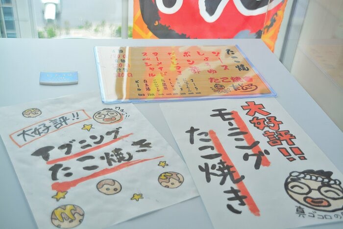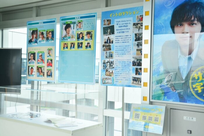 ドラマのポスターや相関図、第一話の台本に混ざって、“完成版”のサバ缶、八嶋智人さん演じる田所明正が営む「たこ焼き たどころ」のメニュー表やポスター、そして出口さんら若狭水産高校の一期生たちのオフショット写真が並びます。