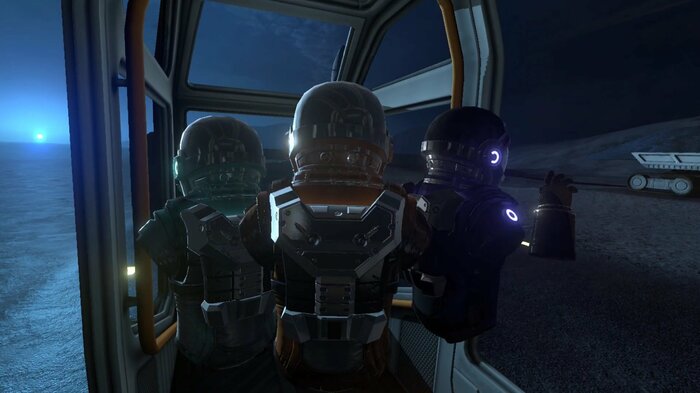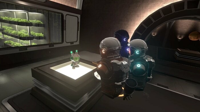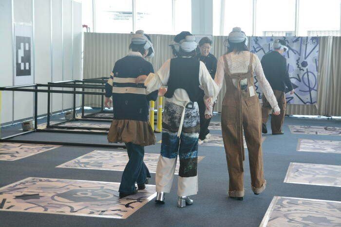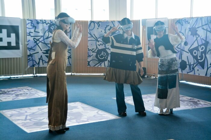 VRゴーグルを通した視界は壮大ですが、実際は「はちたま」内に境界を記しただけの殺風景なエリアを探索している状態…。しかし、3人の視界には未知の火星の風景が広がっています。