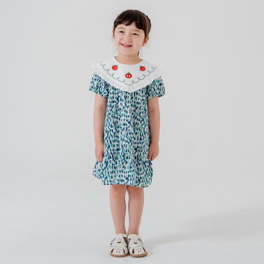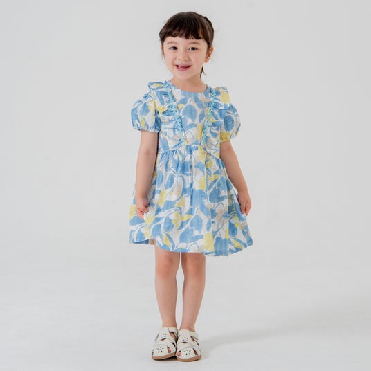 ■アイテム名:【プレミアム】フリルカラーローンプリント半袖ワンピース