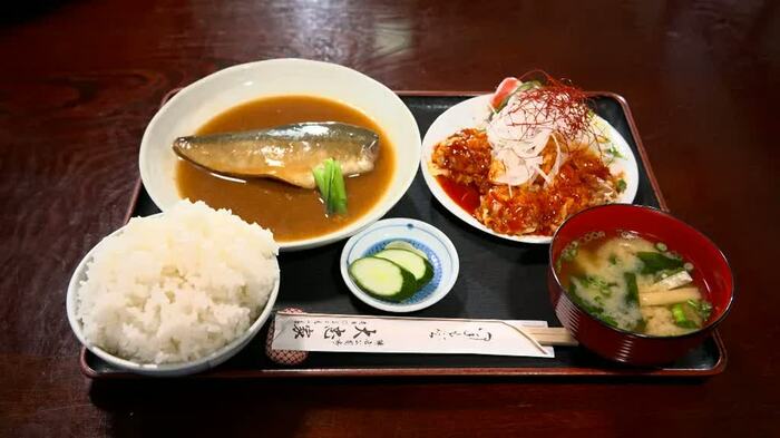 その横でサバの味噌煮を食べる花岡さんも、「タレが効いていて本当においしいです。ご飯が進みます」とにっこり。松岡さんも「自家製さばの味噌煮」をいただきますが、「思った以上にサッパリしてません?」と加藤さんにびっくりした表情を向けます。