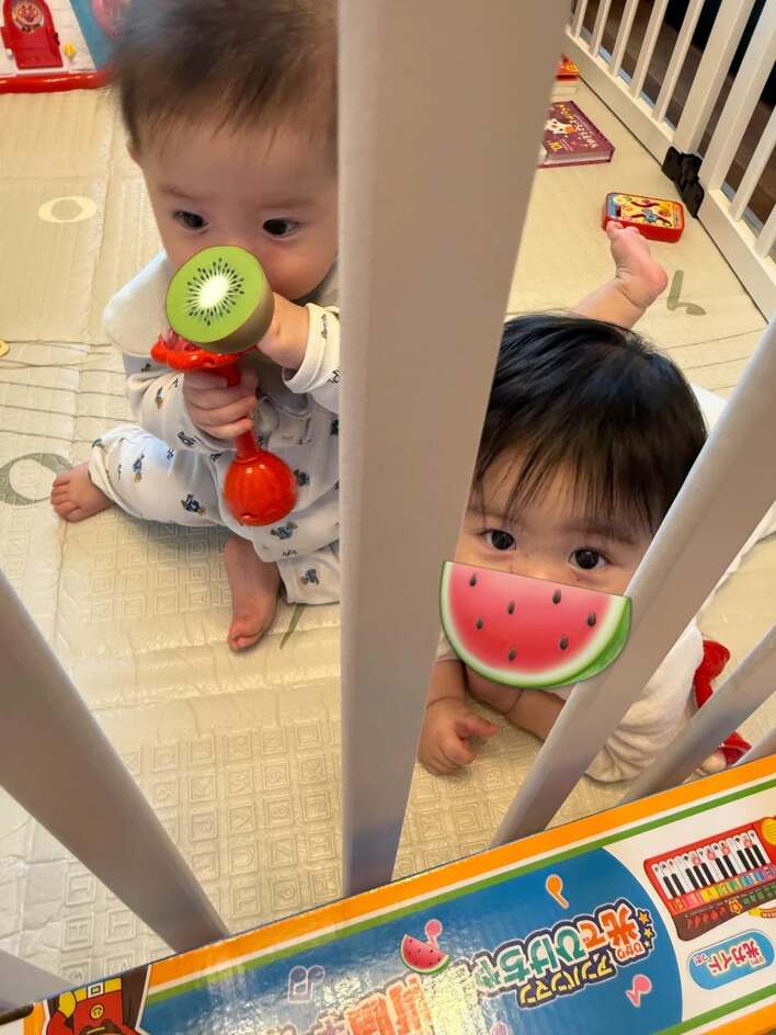 今回の投稿では、お家の中で活動する双子の姿を公開。