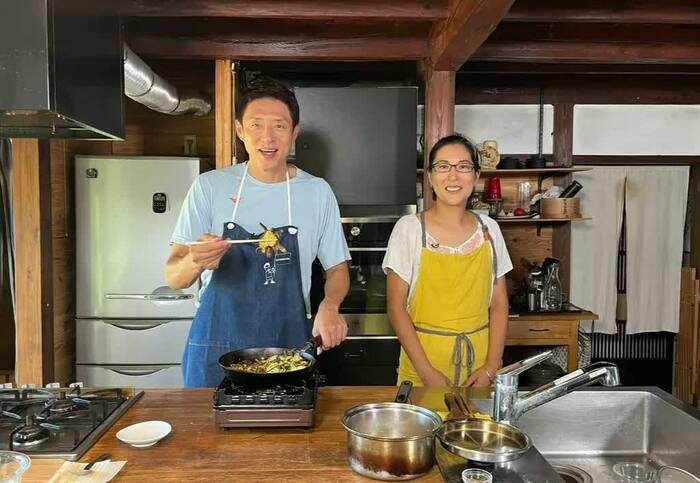 この料理教室は、約10年前に東京から移住した有馬さんが、DIYで古民家を改装したもの。夏は広い庭に置いたプールでスイカを食べたり、切り出した竹を使って流しそうめんを楽しんだりと、「毎日がエンターテイメント」だと、旭市での暮らしの魅力を語ってくれました。
