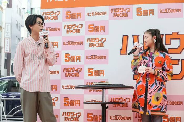 9月20日、「ハロウィンジャンボ宝くじ」「ハロウィンジャンボミニ」の発売記念イベントが行われ、CMに出演する成田凌さんと今田美桜さんが登場しました。
