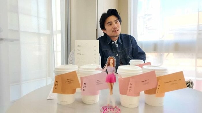 他にも、マスコミ向けに「結婚の時に言ったらだだズベッた」という『BIGLOVEオレ』。さらに、『朝起きたらカーテン開けますティー』、『爆買い妻コーラ』、『海外行きすぎじゃね?アップル』といった全5品のメニュー名を考案。