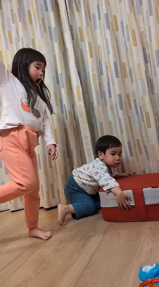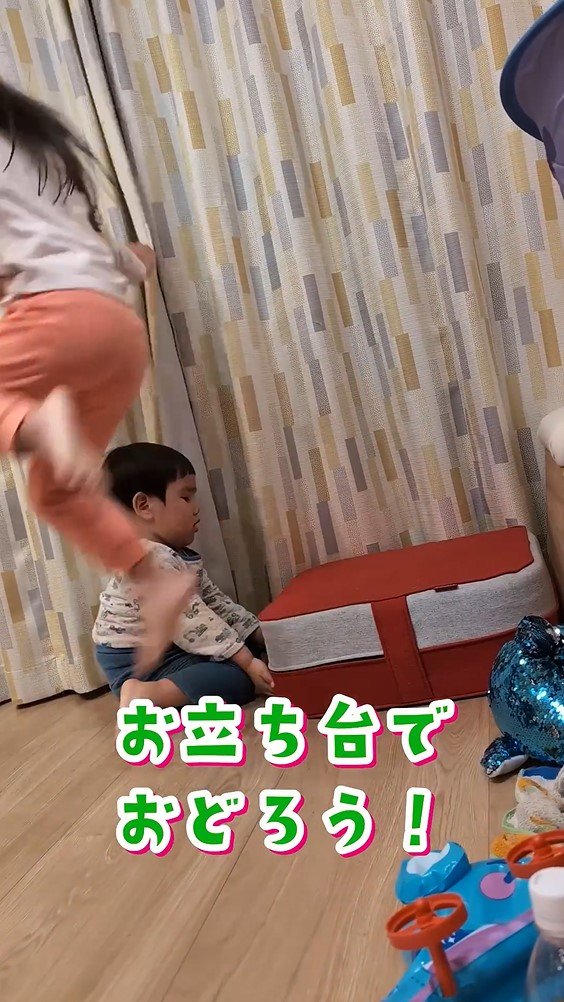 そのままクッションに足をかけ、2人は足踏みをしたり手をパタパタと動かしたりと思い思いのダンスを披露し、リビングが一瞬にしてライブ会場に。まるで目の前に大勢の観客がいるかのようにノリノリで踊っている2人の姿はとってもかわいらしく、ほっこり癒やされます。