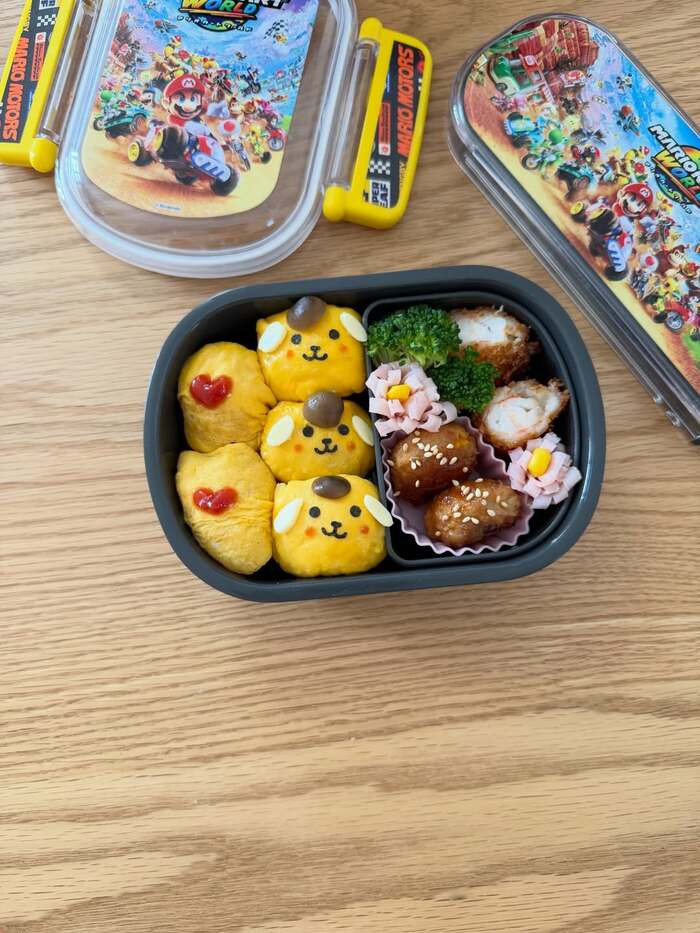 そんな木村さんは、今回の投稿で「年少さんのお弁当」とつづり、煌太郎くんが大好きだというマリオのお弁当箱に詰められた愛らしいポムポムプリンの手作りキャラ弁を披露しました。