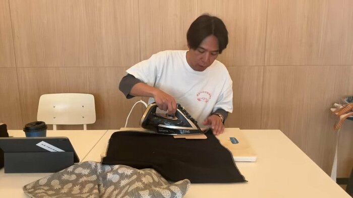得意のミシンで、手際よく縫っていくコカドさん。カメラを回す坪倉さんと会話しながら進めていく姿からは、余裕も感じられます。