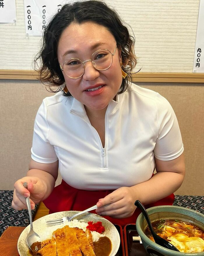 また、別の写真では、カツカレーとかき玉そばを食べている様子も公開!