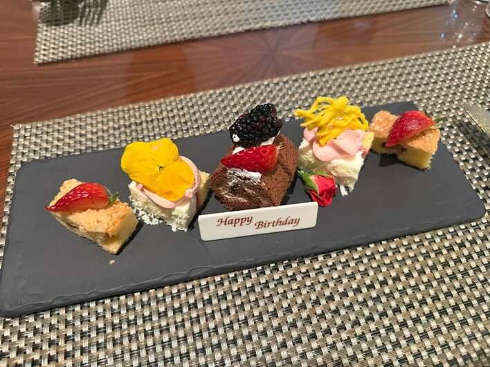 中央には「Happy Birthday」と書かれたメッセージプレートが添えられています。