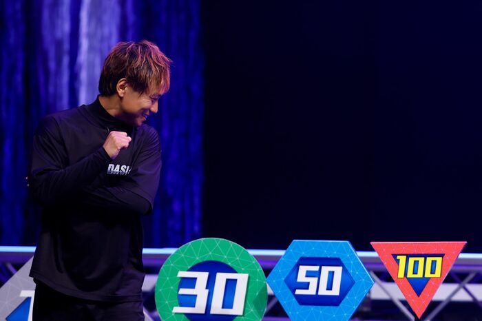 まったく未知数の『DASUNA』の1stGAMEに対し、挑戦者はもちろん、古坂さんや待機メンバーの間にまで緊張感が漂います。しかし、いざゲームがスタートすると、動くパンツガードに合わせて慎重に、かつ一生懸命に動く挑戦者の姿を見て爆笑が巻き起こります。