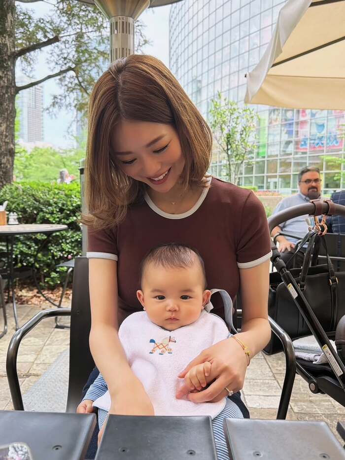 お笑いコンビ・スピードワゴンの井戸田潤さんの妻で、モデルでタレントの蜂谷晏海さんが、2026年4月26日に自身のインスタグラムを更新。生後4ヵ月の次男“チビバーグ”を連れてランチに出かけた際のツーショットを披露しました。