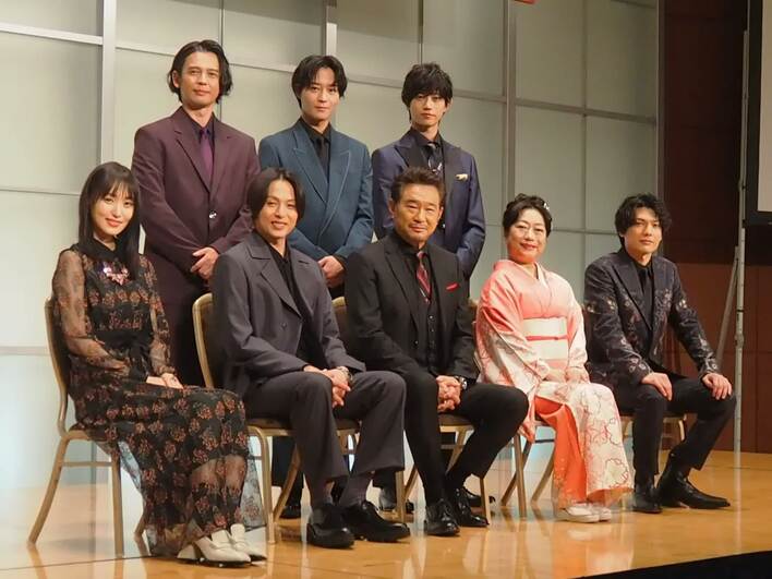 前列左から)菅井友香、新木宏典、船越英一郎、山村紅葉、崎山つばさ