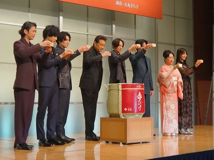 また、会見終了後には鏡開きも行われ、皆で作品の成功を祈願しました。