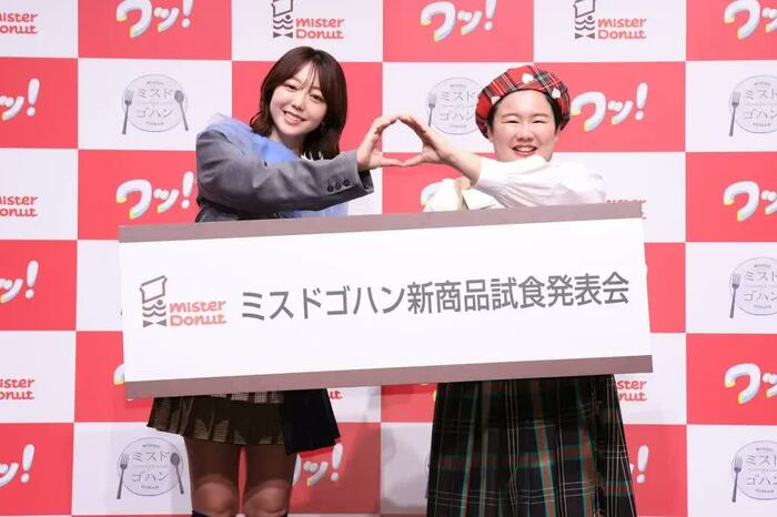 峯岸みなみさんとやす子さんが9月26日、ミスタードーナツ「ミスドゴハン」新商品試食発表会に出席しました。
