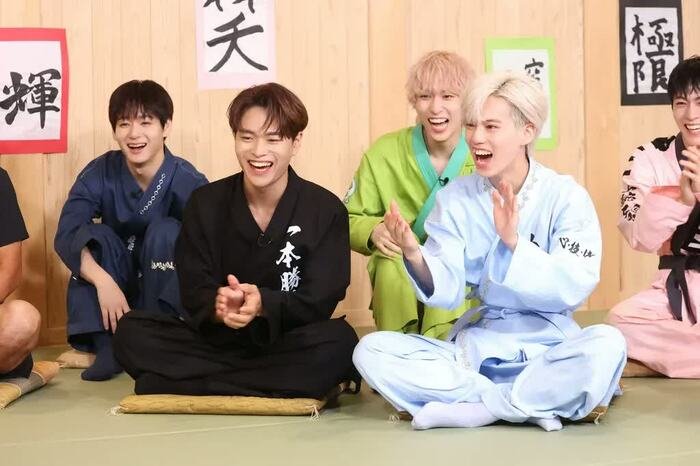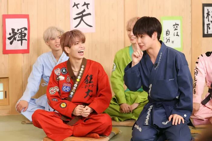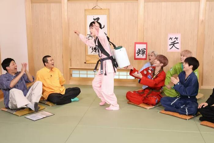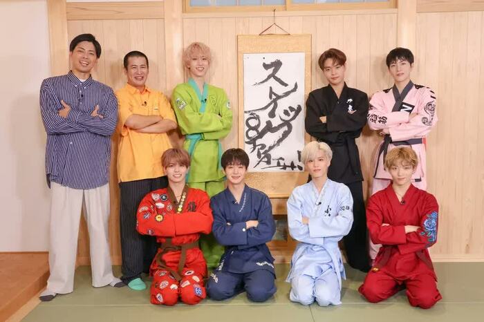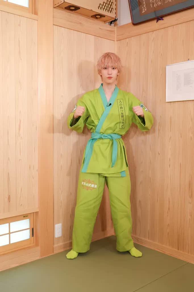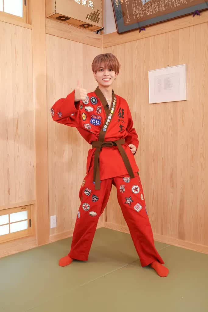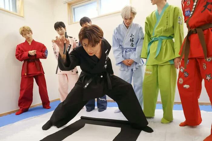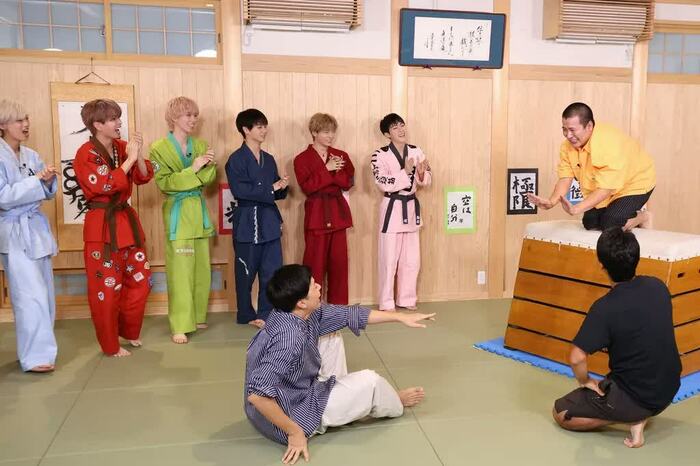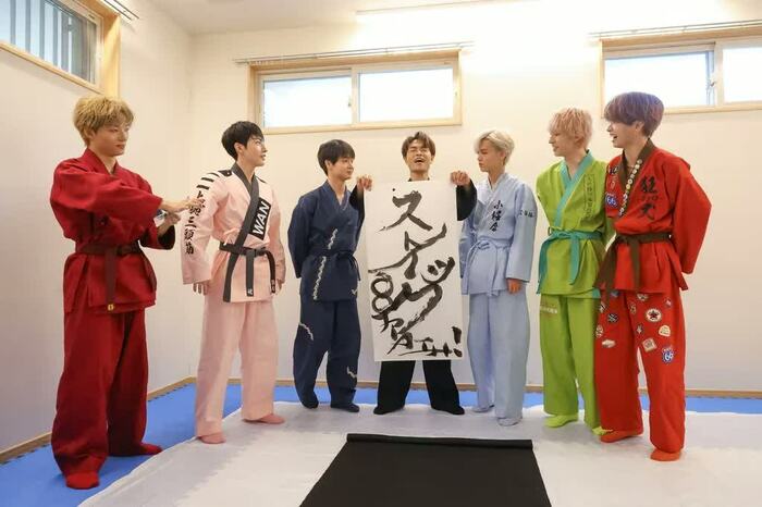 道場風の収録現場には、メンバーカラーの道着に身を包んだ7人の姿が。道着にはメンバー自身がデザインした刺繍やワッペンが施され、それぞれの個性が表現されています。(背中にはお揃いの“タコ”のイラストも!)