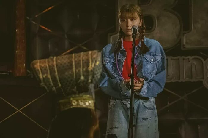 見知らぬ酔っ払いに連れて行かれたライブハウス・BBラウンジで、孔明は月見英子(上白石萌歌)のステージを見て、その歌声に魅了される。