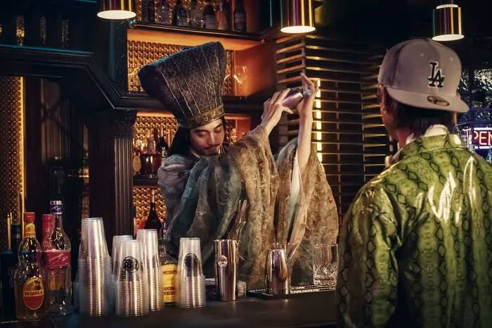 さっそく、BBラウンジのバーカウンターに立つ孔明。初めてとは思えない流麗な手さばきでカクテルを作り、客を捌いていく。