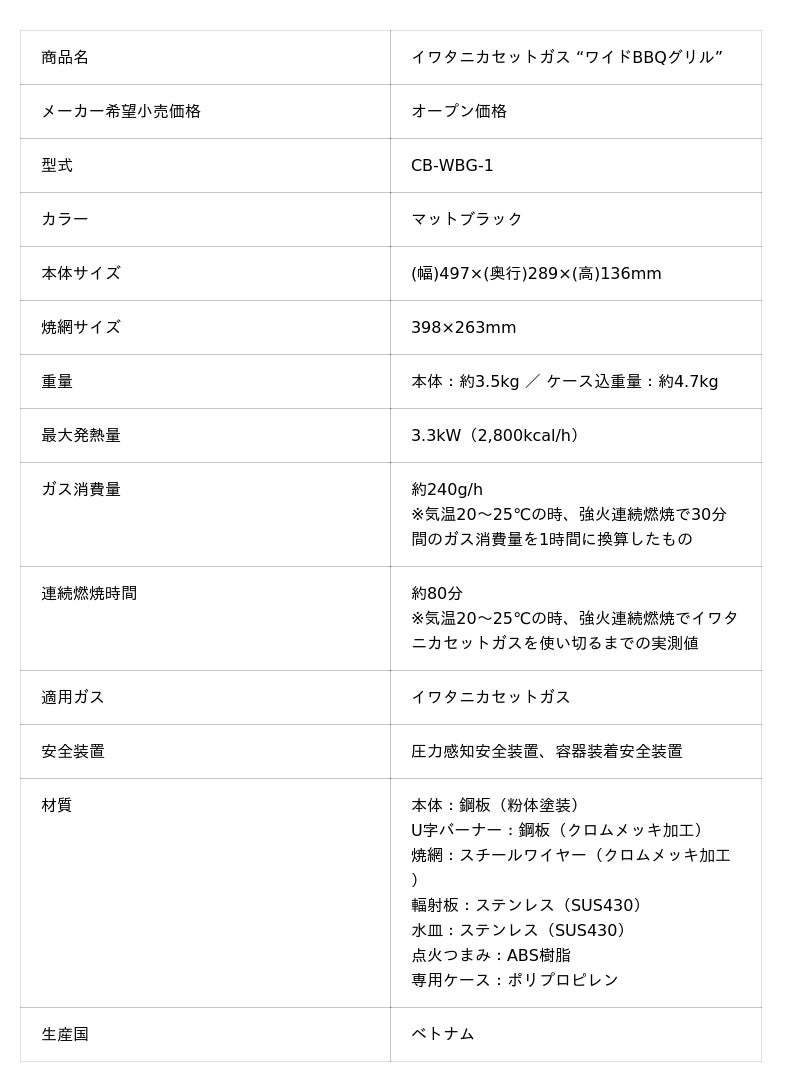 岩谷産業株式会社(本社:大阪・東京、社長:間島 寬)は、ワイド設計で大人数で楽しめるカセットガス式の卓上バーベキューこんろ「イワタニカセットガス “ワイドBBQグリル”」を、2026年4月28日(火)より、当社公式オンラインショッピングサイト「イワタニアイコレクト」、直営ショップ「Iwatani Outdoor Shop BASE」、アウトドア専門店、スポーツ量販店などで発売いたします。